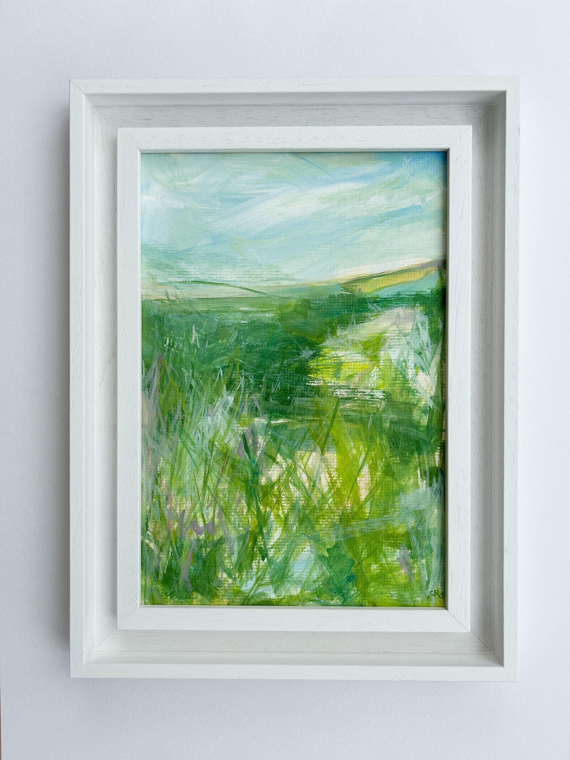 The painting is presented framed (with no glass) in a gorgeous white coastal frame and strung ready to hang.